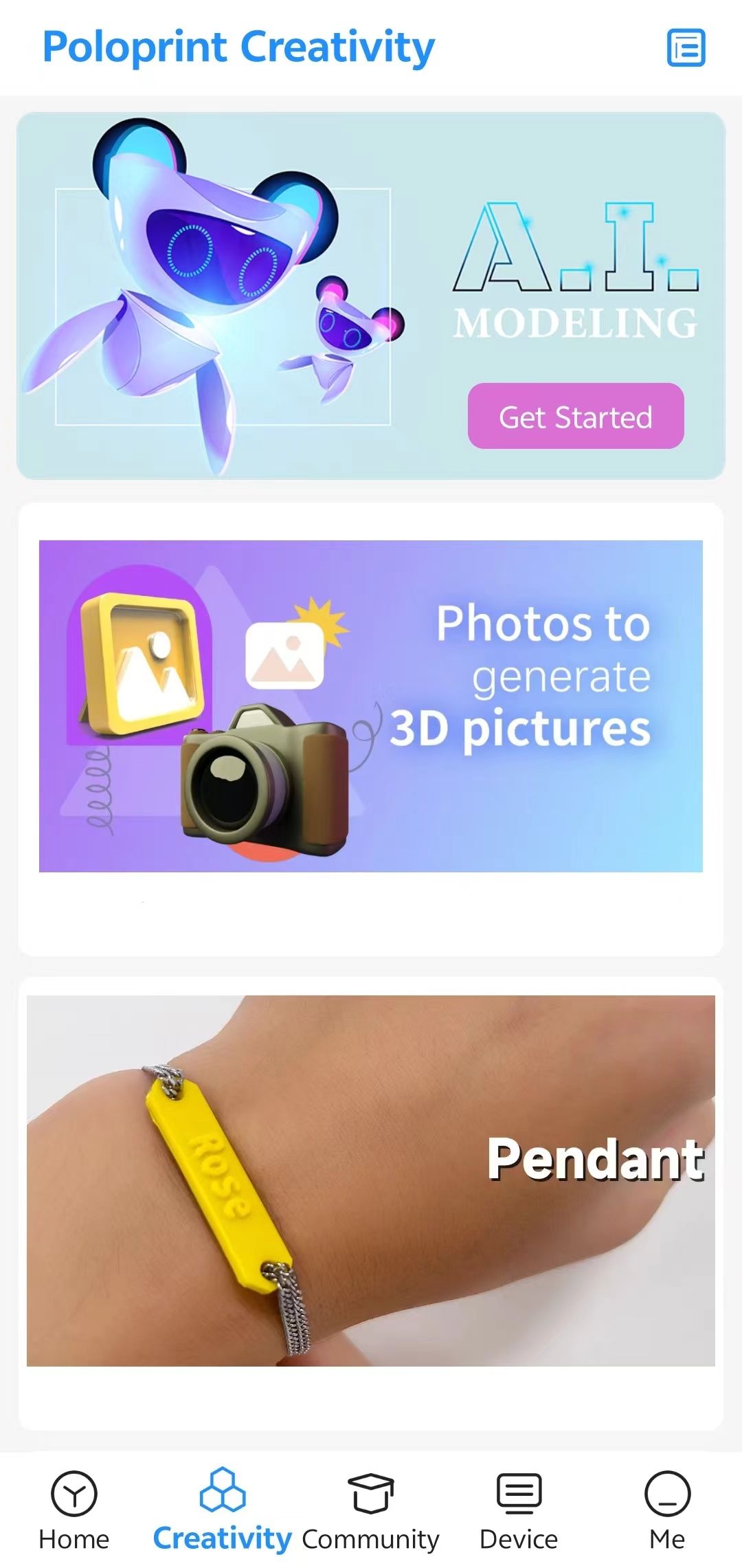 Once you have bound your machine with the app, you can directly use the AI function to create your own models.